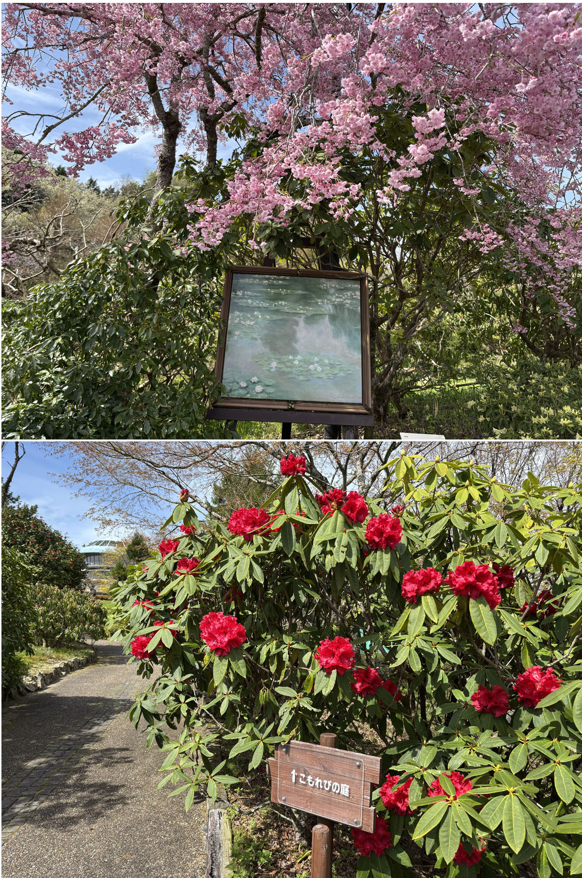 今朝の比叡山頂は心地の良い気候となり、シダレザクラやシャクナゲが美しく咲き、